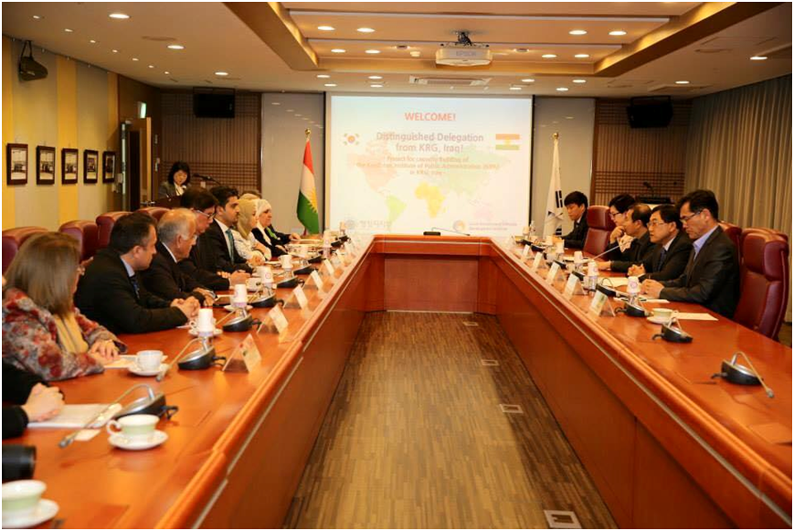 به مهبهستی ئاشنابوونی زیاتر به ئهزموونی وڵاتی كۆریای باشوور له بواری پهرهپێدانو رۆِڵی گرنگی بهرزكردنهوهى ئاستی فهرمانبهرانی كهرتی گشتی شاندێكی باڵای حكومهتی ههرێمی كوردستان سهردانی كۆریای باشووریان كرد له رێكهوتی (15 – 29 /11/2015). سهردانییهكه له چوارچێوهی ههماههنگیی نێوان ئاژانسی كۆیكاینێودهوڵهتی (KOICA) بۆ پهرهپێدانی مرۆیی و ئهنستیتۆی كوردستان بۆ كارگێری گشتی (KIPA) رێكخرابوو. شاندهكهی ههرێم به نوێنهرانی ههریهكه پهرلهمانی كوردستان، سهرۆكایهتیی ئهنجوومهنی وهزیران و ئهندامانی پرۆژهكه، بۆ ماوهی دوو ههفته له كۆریای باشوور مایهوه. لهم نێوهندهدا وهزارهتمان ئاشناكرا به سیستمی كار و ئهزموونی وڵاتی خانهخوێ لهمهڕ پهرهپێدانو رۆِڵی بهرزكردنهوهى ئاستی فهرمانبهرانی كهرتی گشتی له گهشهسهندنی ئابووریدا. لێرهدا ئامانجی KIPA ئامادهكردنی رهشنووسێكه له بواری پهرهپێدانی مرۆیی.